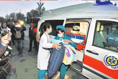 普安县长途救护车出租告诉您现场判断呼吸和心脏骤停的迹象:1.突然昏迷。2.颈动脉和股动脉搏动消失。3.呼吸停止。4.瞳孔散大。如果上述迹象同时出现2个或更多,可诊断为呼吸.心跳骤停。人工呼吸法:1.伤员仰卧,头尽量向后倾斜,松开衣服,清除口腔异物,拉出舌头,保持呼吸道通畅。操作者用一只手捏住患者的鼻子,用另一只手轻轻按压环形软骨。深呼吸后,以16-18次/分钟的频率将其吹入伤者的嘴中。每次吹气的有效